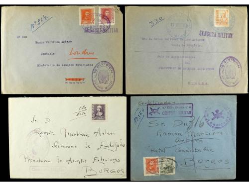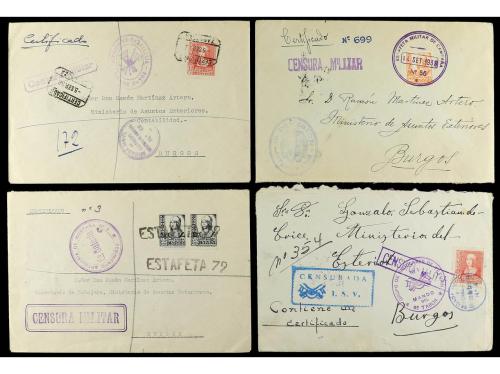 ESPAÑA GUERRA CIVIL. 1937-39. Conjunto de 16 cartas de la Zona Nacional con diversos franqueos y marcas de franquicia.