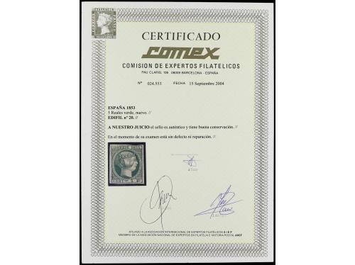 * ESPAÑA. Ed. 20. 5 reales verde. Buen color y márgenes. Muy buen ejemplar. Cert. COMEX.