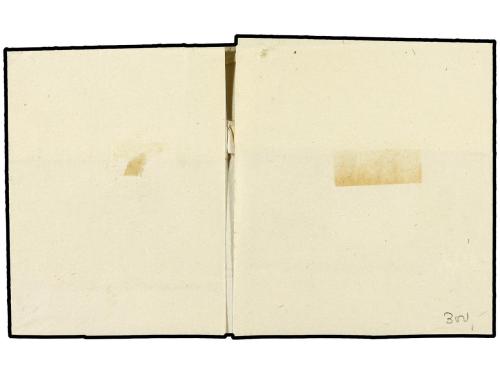 ESPAÑA. Ed. 33. 1855. ATIENZA a MADRID. 4 cuartos rojo, mat. fechador ATIENZA/GUADALAJARA tipo I y PARRILLAS en las esquinas. Pieza espectacular y muy rara.