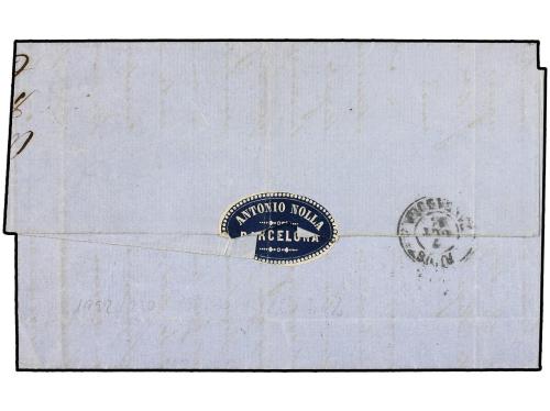 ESPAÑA. Ed. 64dpa. 1864. BARCELONA a REUS. Carta completa de la firma Antonio Nolla circulada con sello de 4 cuartos rojo con perforación 13 realizada por esta firma comercial. RARÍSIMA, pocas conocidas. Cert. GRAUS y COMEX.