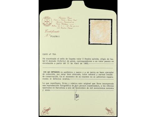 (*) ESPAÑA. Ed. 79A. 2 reales naranja pálido. Muy bien centrado. RARO. Cert. GRAUS.