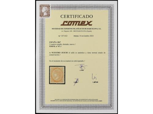 * ESPAÑA. Ed. 87. 2 cuartos castaño. Centraje perfecto. LUJO. Cert. COMEX. Cat. 610€.