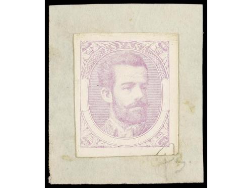 ESPAÑA. PRUEBA DE PUNZÓN sin valor en color lila. Diseño no adoptado sobre papel cartulina (Gálvez 219).