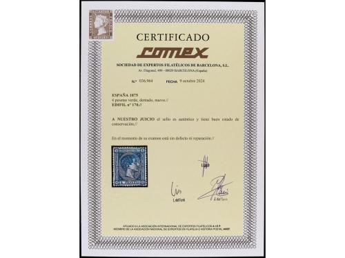 * ESPAÑA. Ed. 170. 4 pts. verde. Centraje perfecto. PIEZA DE LUJO. Cert. COMEX. Cat. 900€.