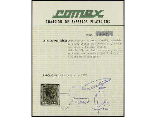 * ESPAÑA. Ed. 198. 4 pesetas violeta. Color intenso y muy bien centrado. Cert. COMEX (1977).