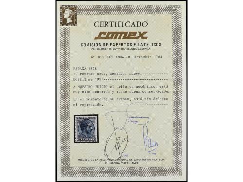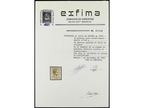 ** ESPAÑA. Ed. 199. 10 pesetas azul. Color intenso y bien centrado. PIEZA DE LUJO. Cert. EXFIMA y COMEX.