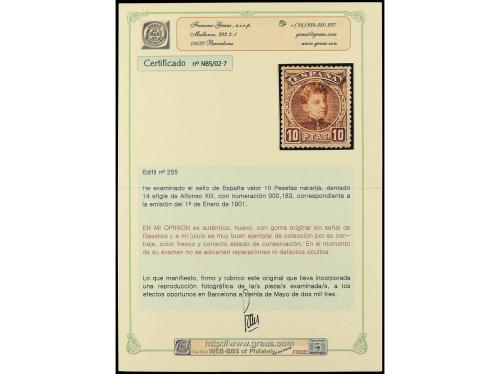 ** ESPAÑA. Ed. 255. 10 pesetas naranja. Muy bien centrado. Cert. GRAUS.