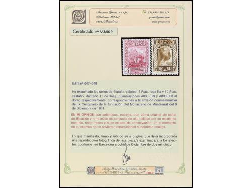 ** ESPAÑA. Ed. 636/49. SERIE COMPLETA. 14 valores. Bien centrados. 4 y 10 pts. cert. GRAUS (alta calidad). Cat. 4.000€.