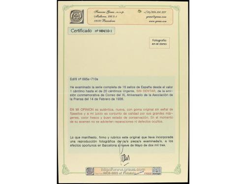 ** ESPAÑA. Ed. 695/710s. SERIE COMPLETA. 16 valores SIN DENTAR. Todos borde de hoja. LUJO. Cert. GRAUS. Cat. 500€.