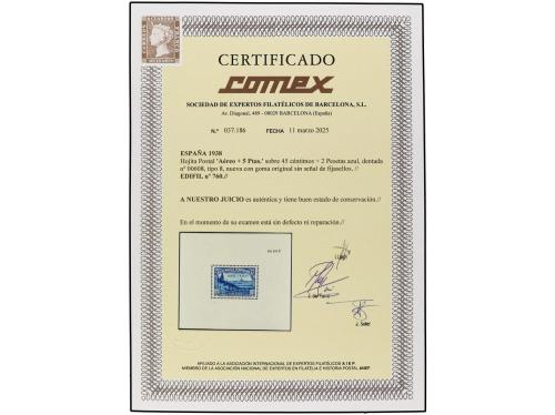 ** ESPAÑA. Ed. 760. HB. Aéreo + 5 pts. RARA sin fijasellos. LUJO. Cert. COMEX. Cat. 6.500€.