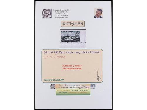 * ESPAÑA. Ed. 780dmz. 15 pts. verde SIN DENTAR POR TRES LADOS, dentado inferior DOBLE. RARO. Dictamen GRAUS.