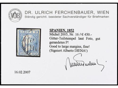 ° ESPAÑA. Ed. 16. 6 reales azul. Muy bonito ejemplar. Dictam ° ESPAÑA. Ed. 16. 6 reales azul. Muy bonito ejemplar. Dictam