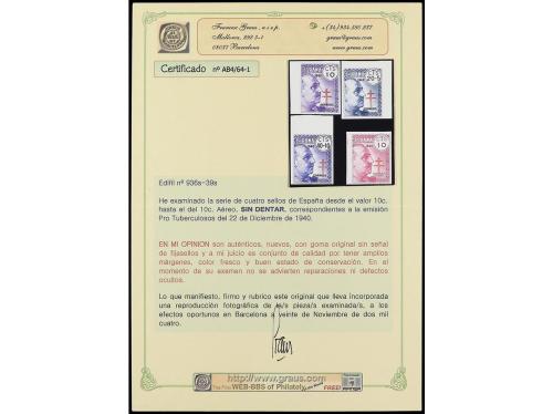 ** ESPAÑA. Ed. 936/9s. SERIE COMPLETA. 4 valores SIN DENTAR. Amplios márgenes o borde de hoja LUJO. Cert. GRAUS. Cat. 440€.