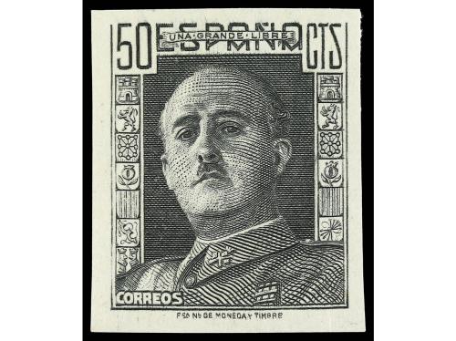 ** ESPAÑA. 50 cts. verde oscuro. Dentado y sin dentar. ENSAYOS DE COLOR.