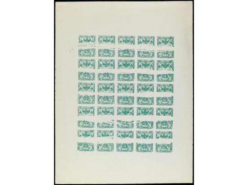 ESPAÑA: AYUNTAMIENTO DE BARCELONA. Ed. 7. 1930. CONGRESO FILATÉLICO. 5 cts. verde amarillo. Prueba procedente de la plancha original inutilizada.