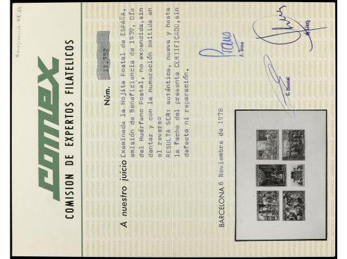 ** ESPAÑA: BENEFICENCIA. Ed. NE 34. HOJITA BLOQUE NO EXPENDIDA SIN DENTAR. Tirada 100. MUY RARA. Parcialmente sin engomar, habitual en esta emisión. Cert. COMEX (1978). Ver dorso en web.