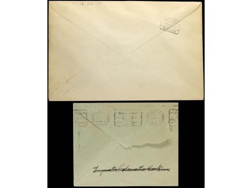 ESPAÑA GUERRA CIVIL. BALEARES. Dos cartas circuladas con la viñeta de 50 cts. Monolito de la Victoria y sello de Pro Paro de 10 cts. sin dentar. Raros en carta.