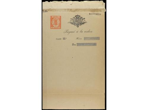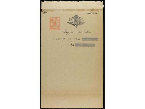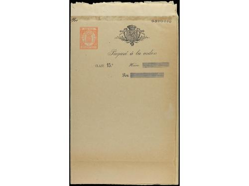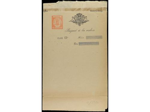 ESPAÑA. 1900. PAPEL SELLADO. PAGARÉ A LA ORDEN "Muestra de Pagaré a la Orden, clase... Madrid Noviembre 1899" 4 valores 10 c. a 1 pta. numeración ceros. Foto en web.