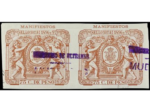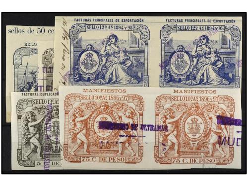 PUERTO RICO. 1892-97. FISCALES. ADUANAS. Conjunto de 5 pólizas en parejas, habilitadas MUESTRA en violeta.