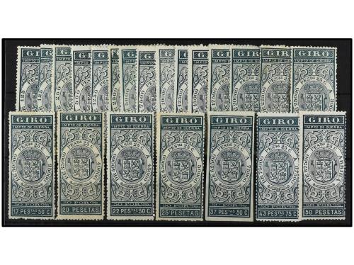* ESPAÑA: FISCALES. 1876. GIRO. Serie completa a falta del 31,25 pts. Al. 90/112 .