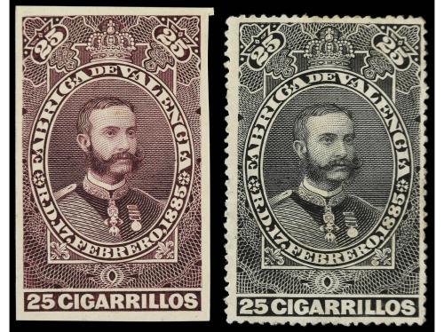* ESPAÑA: FISCALES. IMPUESTO DEL TABACO. FÁBRICA DE VALENCIA. 25 castaño y negro. Al. 4/5 .