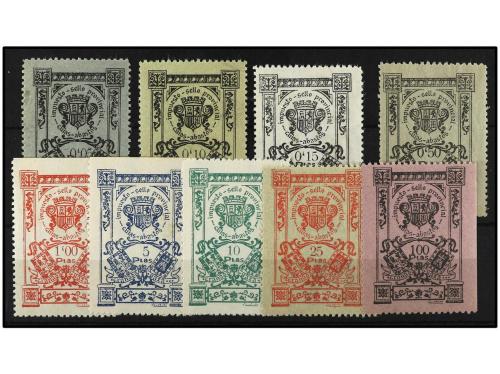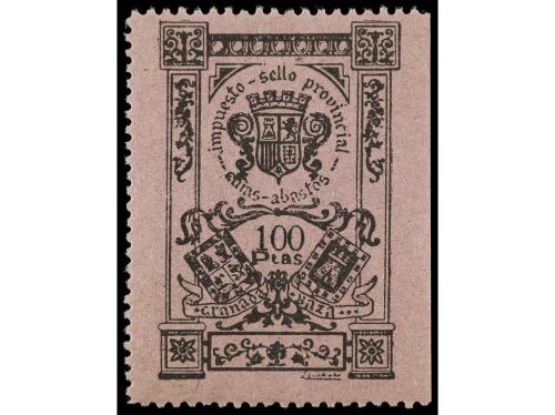 ESPAÑA: FISCALES. AYUNT. DE GRANADA - BAZA. IMPUESTO MUNICIPAL. Conjunto de 9 valores incluyendo el 100 pts. que es RARÍSIMO.