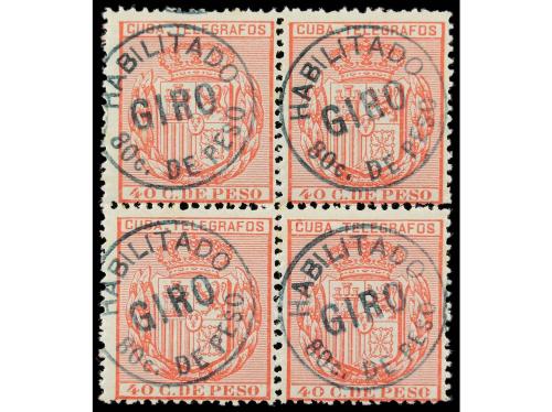 CUBA. FISCALES. GIRO. Sellos de Telégrafos de 1894-96 Habilitados para Giro, 6 valores en bloques de cuatro .