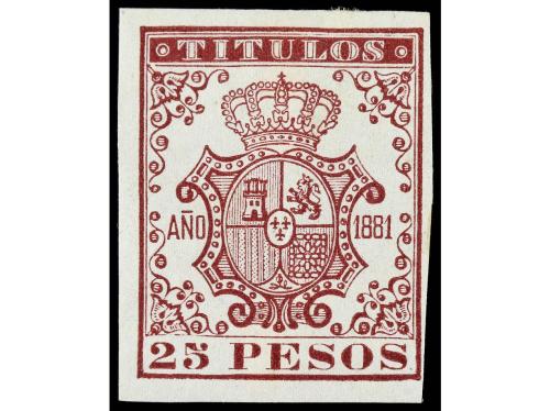 PUERTO RICO. 1865-1881. FISCALES. TITULOS. 14 SERIES COMPLETAS, excepto 12 pesos de la serie de 1865. Total 54 valores, con y sin goma. Buena calidad. RARO CONJUNTO.