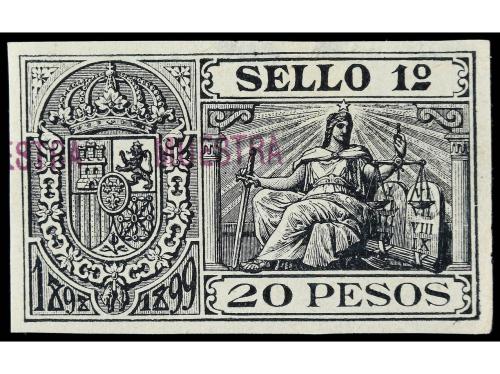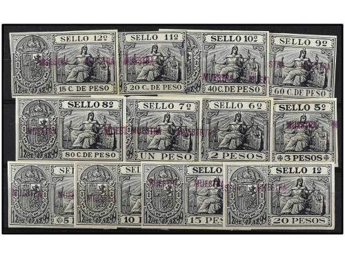 PUERTO RICO. FISCALES. DERECHOS JUDICIALES. Serie completa de 12 valores de 1898 con habilitación MUESTRA en violeta. MUY RAROS.