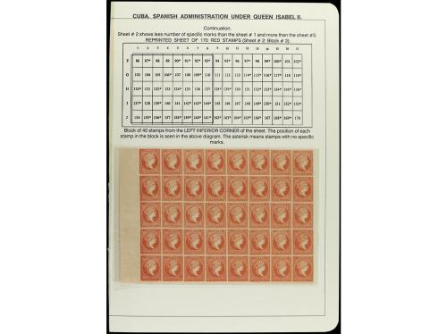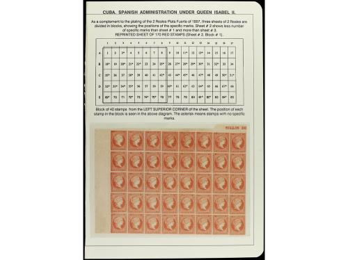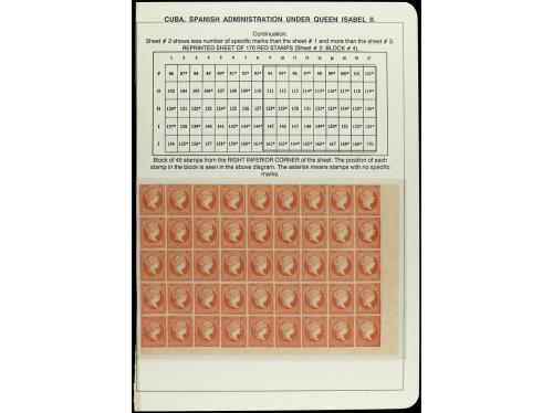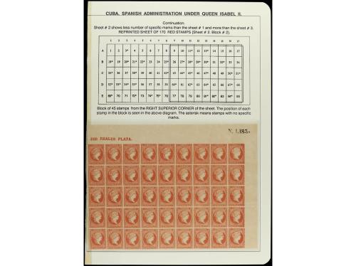 * CUBA. Ant. 9. 2 reales rojo. Reconstrucción de la hoja de 170 sellos con dos bloques de 40 sellos y dos de 45 sellos. ESPECTACULAR y RARO CONJUNTO. Ex. col. IBAÑEZ.