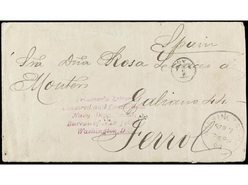CUBA: OCUPACION ESTADOS UNIDOS. 1898. GUERRA HISPANO-AMERICANA. WASHINGTON al FERROL (España). Carta enviada por un militar español prisionero. Marca PRISONER'S LETTER/CENSORED AND FORWARDED/NAVY DEPARTMENT/WASHINGTON. Muy rara.