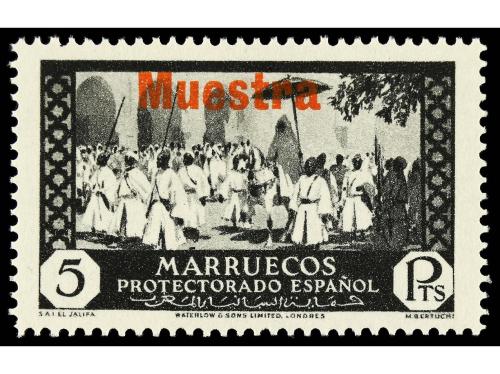 **/* MARRUECOS. Ed. 133/47M. SERIE COMPLETA habilitación MUESTRA en minúsculas, el 1 cto. la habilitación es con mayúsculas más el 10 cts. no reseñado y el 20 cts. con habilitación en rojo. RARO CONJUNTO. Cat. +385€.