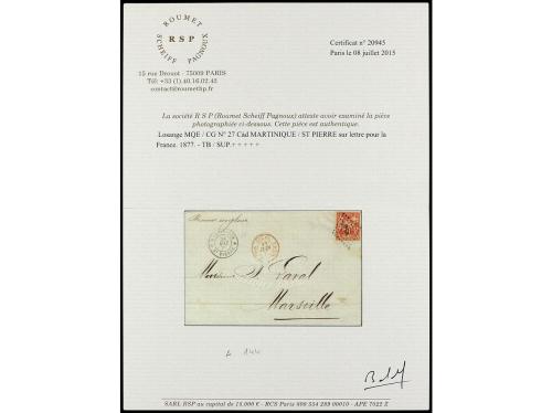 ✉ MARTINICA. 1877. ST. PIERRE a MARSELLA. 40 cts. naranja, m ✉ MARTINICA. 1877. ST. PIERRE a MARSELLA. 40 cts. naranja, m ✉ MARTINICA. 1877. ST. PIERRE a MARSELLA. 40 cts. naranja, m