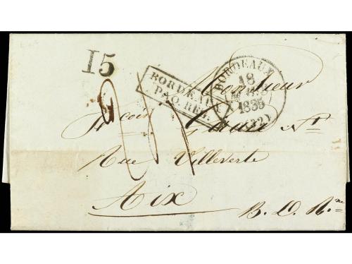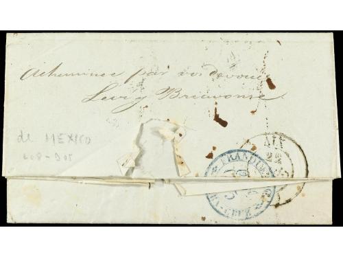 MEXICO. 1834. MÉXICO a FRANCIA. Al dorso Encaminador manuscrito y marcas a la llegada BORDEAUX/PAQ. REG. y fechador BORDEAUX.