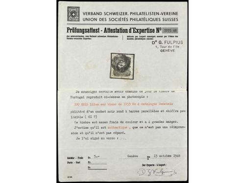 ° PORTUGAL. Mu. 4. 100 reis lila. Grandes márgenes. Muy bonito. Cert. FULPIUS. Cat. 3.500€.