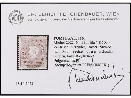 ° PORTUGAL. Mu. 35. 240 reis lila. Muy bonito ejemplar. Cert. FERCHENBAUER. Cat. 880€.
