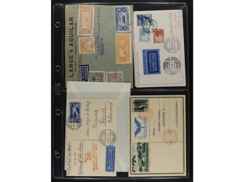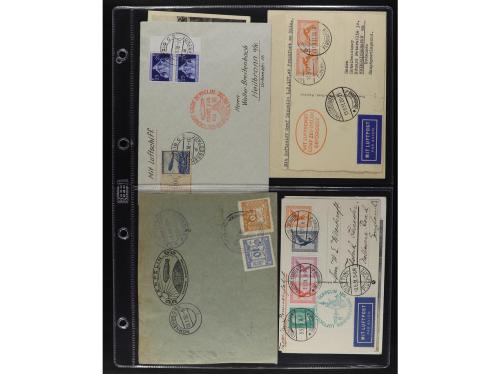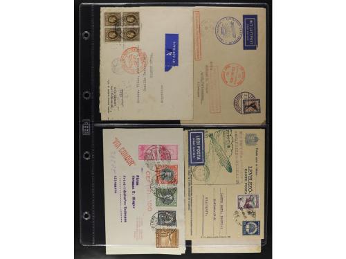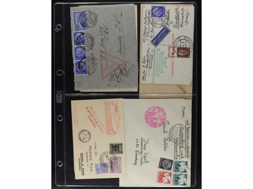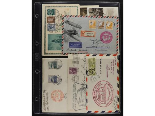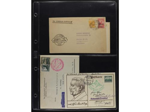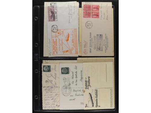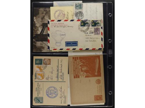ZEPPELIN. HISTORIA POSTAL. Conjunto montado en hojas clasificador con 50 cartas o tarjetas con distintas marcas del Graf Zeppelin. INTERESANTE. Foto en web.
