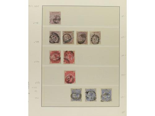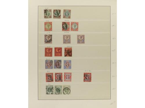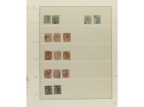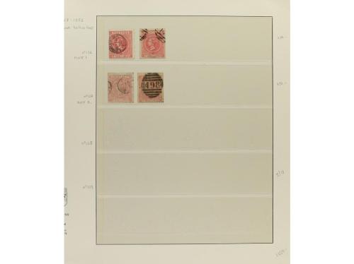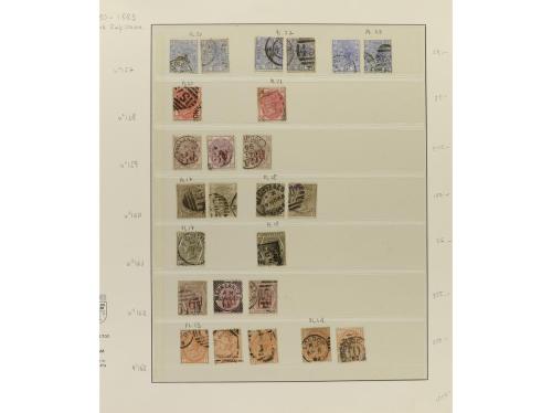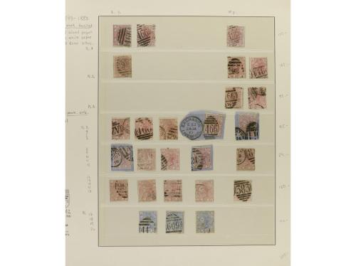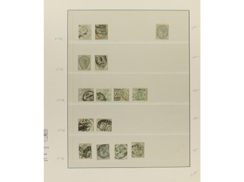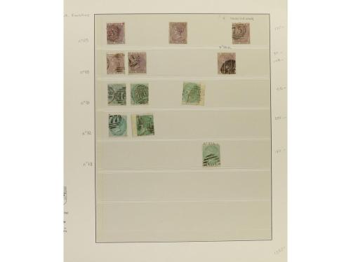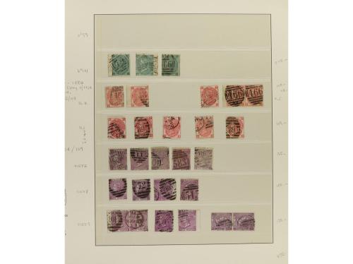 LOTES y COLECCIONES. GRAN BRETAÑA. VICTORIA. Colección montada en álbum, período 1855-1900. En general sellos usados, incluyendo variedades y planchas. No hay piezas de gran valor y los sellos de 1 £ tienen taladros de empresa. Puede haber algún sello con defecto, pero en general, buena calidad. Muy buen conjunto. Valor Yvert, +45.000Ђ. Foto en web ex-17.