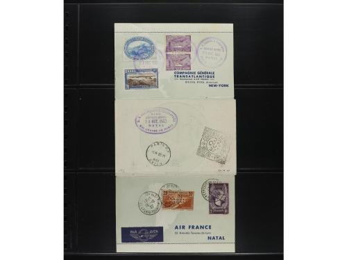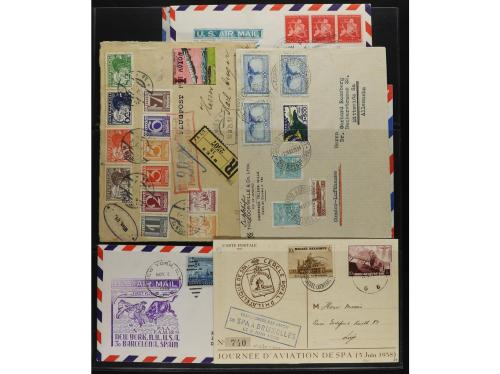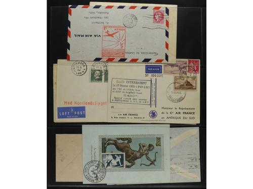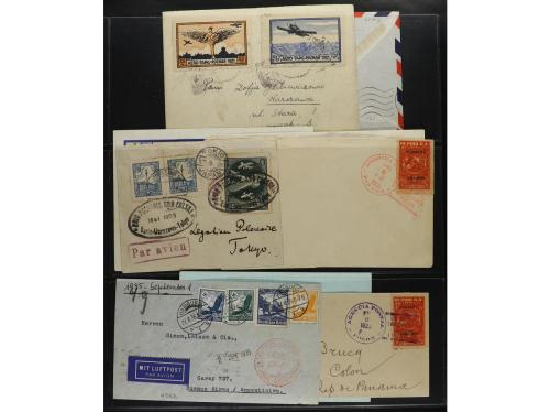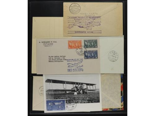 LOTES y COLECCIONES. CORREO AÉREO. HISTORIA POSTAL. Conjunto montado en hojas clasificador con 33 cartas, frontales o tarjetas con distintas marcas de Correo Aéreo, primeros vuelos, etc. INTERESANTE. Foto en web.
