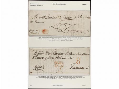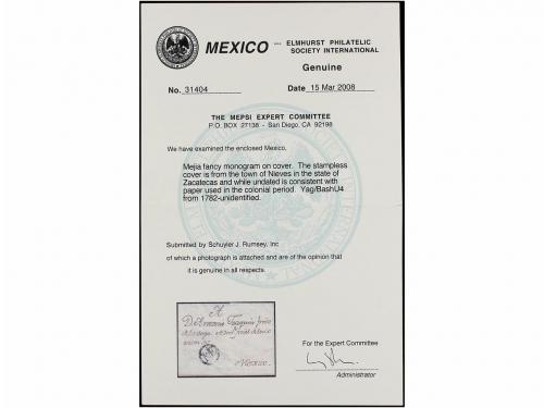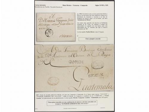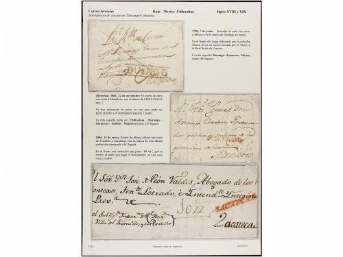 MEXICO. PERÍODO COLONIAL. Conjunto de 18 cartas o frontales. Destacando las marcas de DURANGO (nº 1) e INTENDENCIA DE MÉXICO, más cuatro cartas certificadas destacando entre ellas la de VALLADOLID de 1789 que es una de las más antiguas conocidas en todo el continente Americano y la única conocida que conserva el contenido en todo el Período Colonial. (Ver todas las imágenes en la web).
