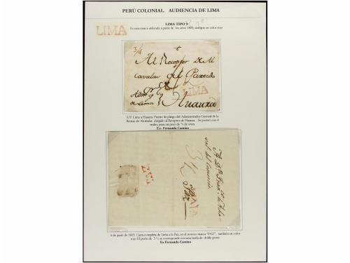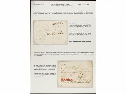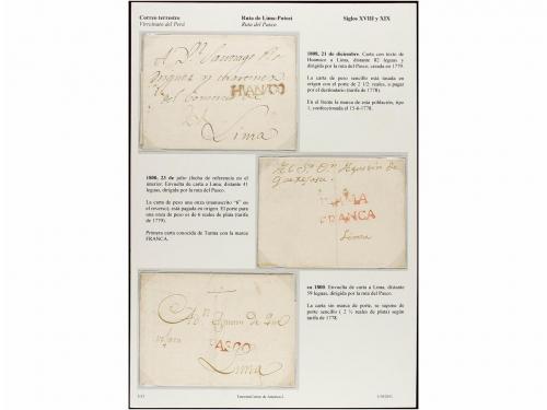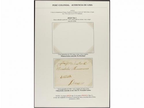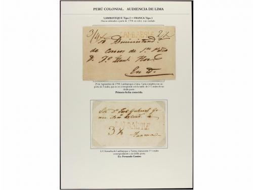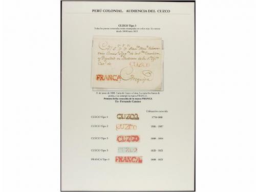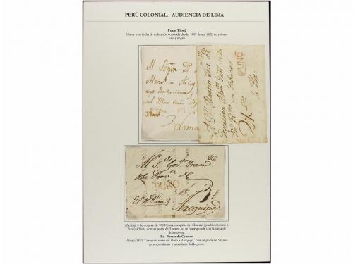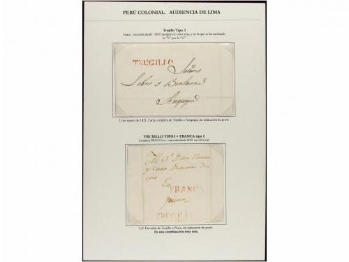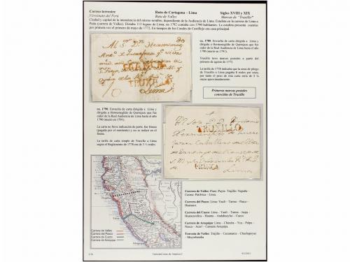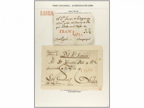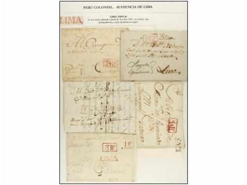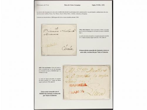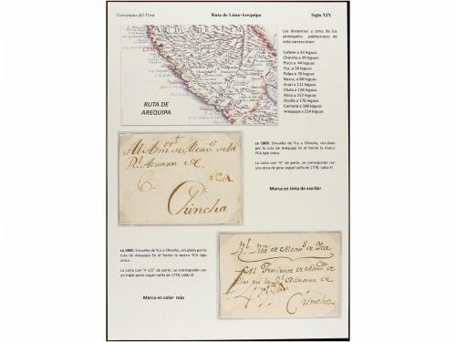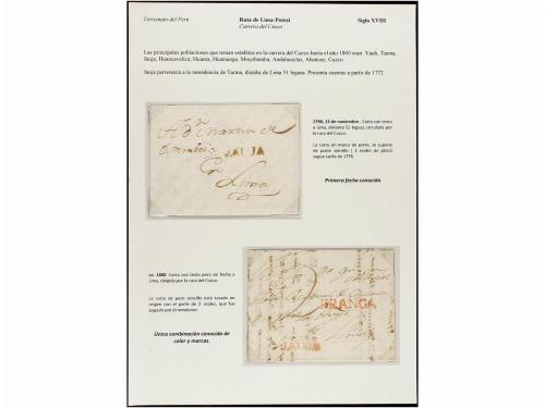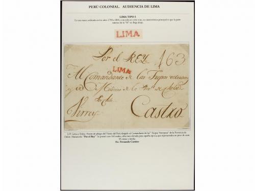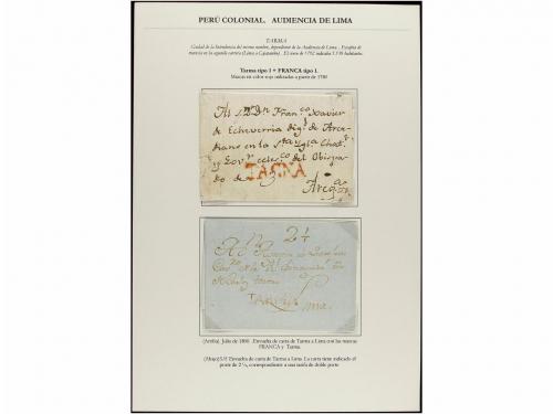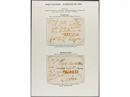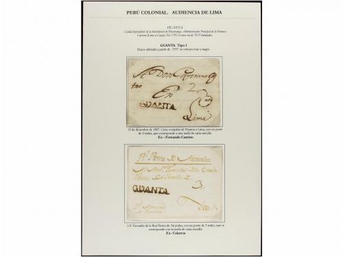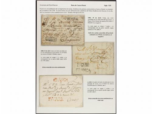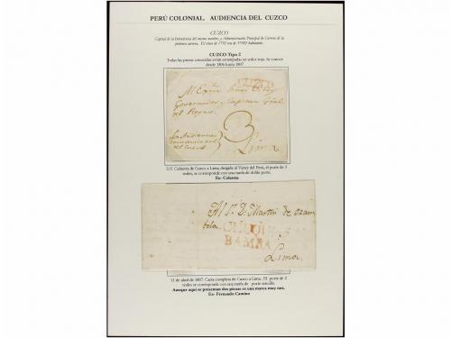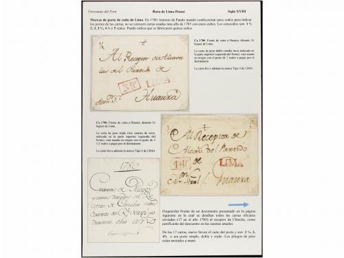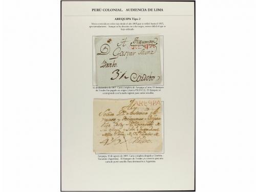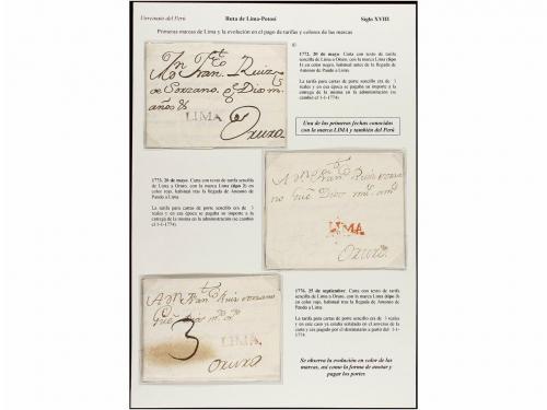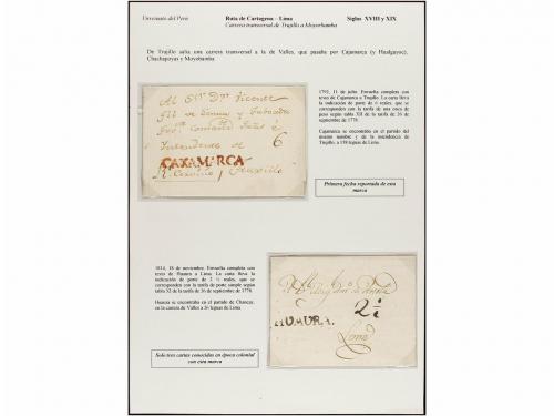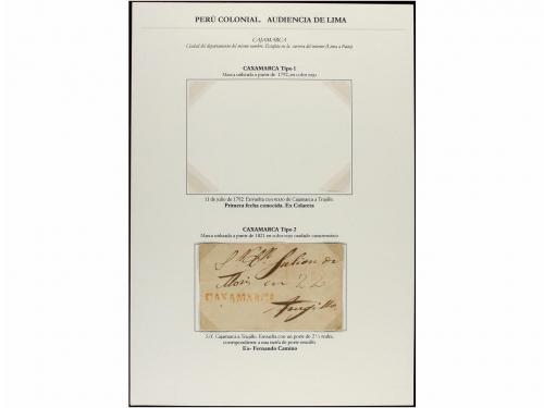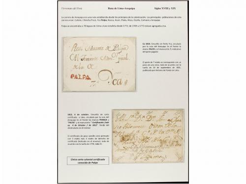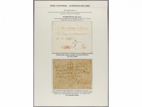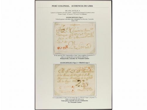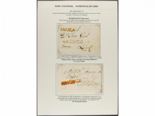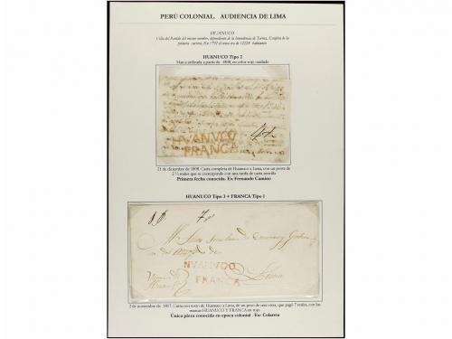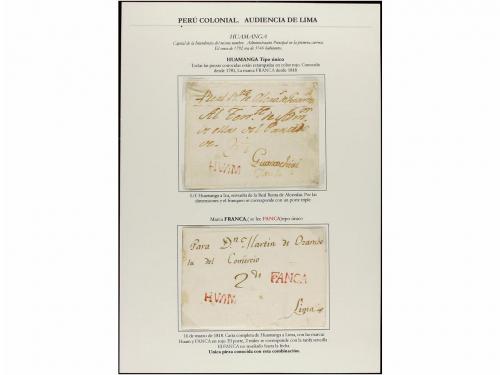 PERU. PERÍODO COLONIAL. Colección compuesta por 156 cartas. Destacando a parte de varias CERTIFICACIONES A LIMA, las cartas certificadas de PIURA, PALPA, GUANCAVELICA y HUAMANGA así como varias decenas de cartas únicas o menos de tres conocidas. Conjunto excepcional e irrepetible contiene las mejores piezas de las colecciones de COLARETA y FERNANDO CAMINO así como piezas procedentes de las colecciones de BUSTAMANTE y L. J. HARRIS. Sin duda estamos ante la colección de Perú Colonial más importante jamás formada. (Ver todas las imágenes en web).
