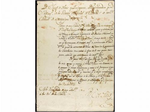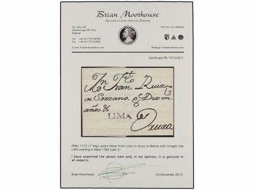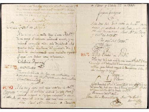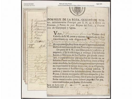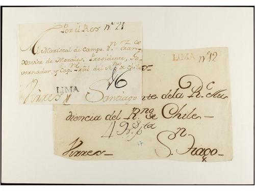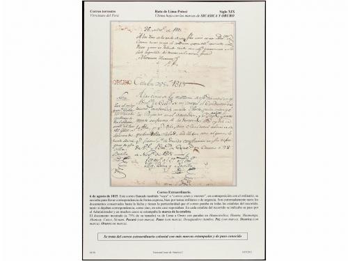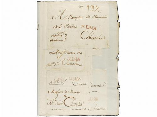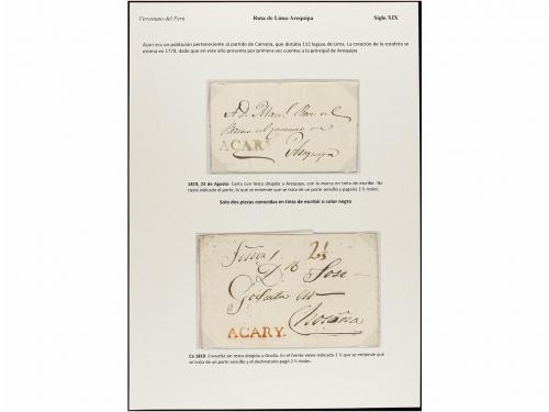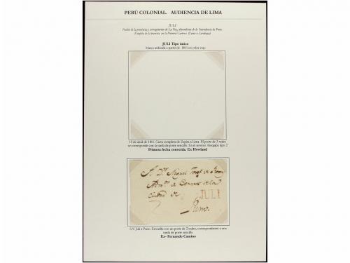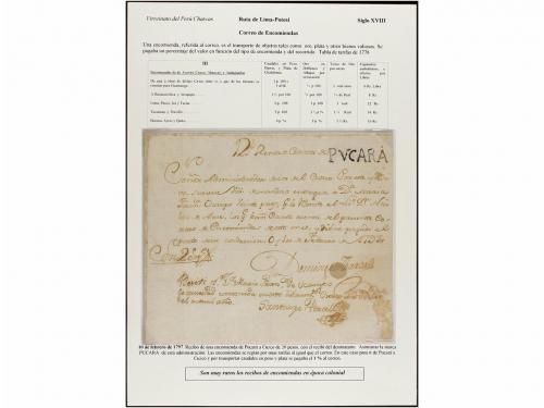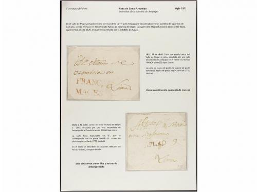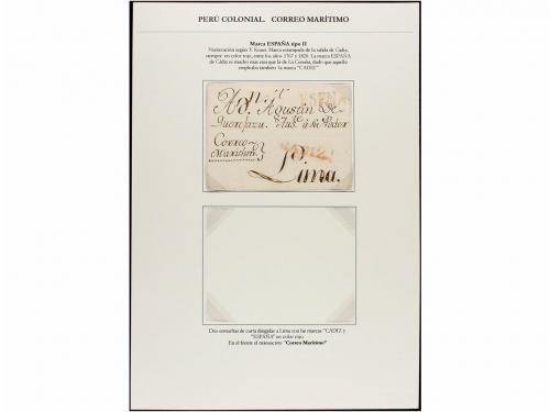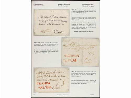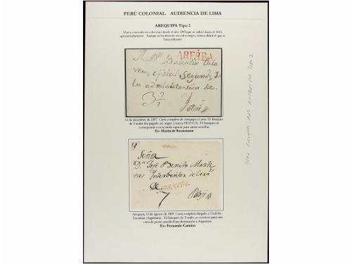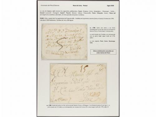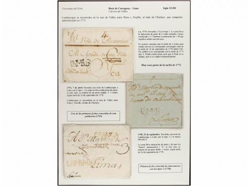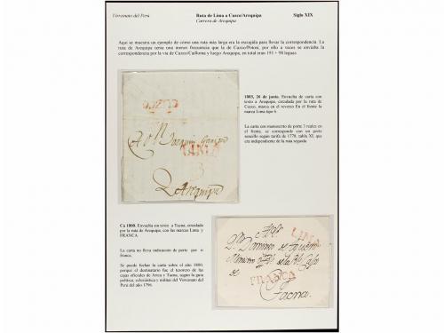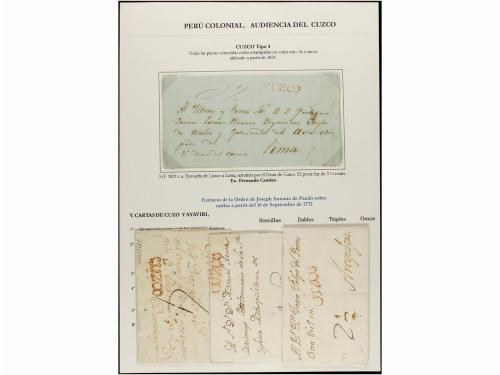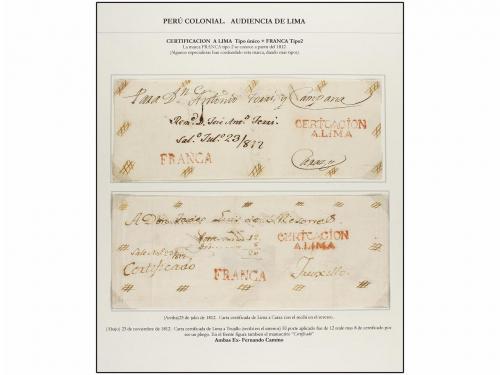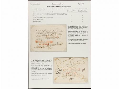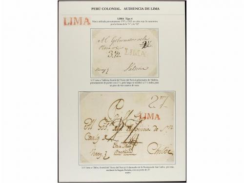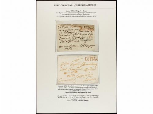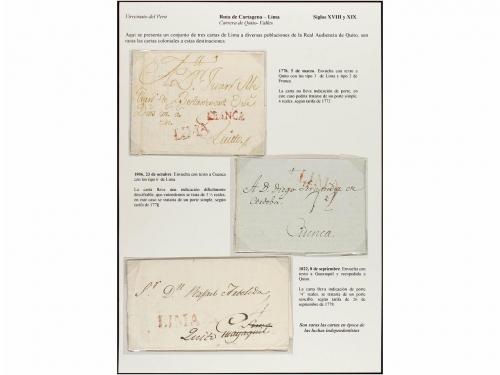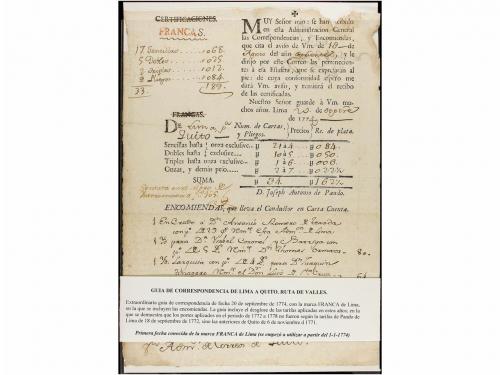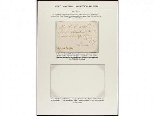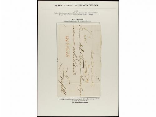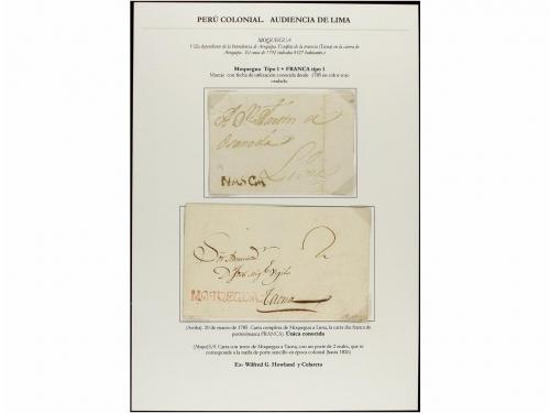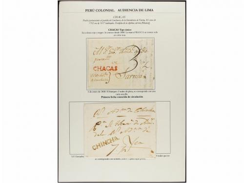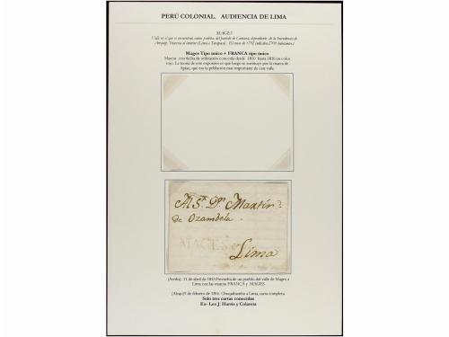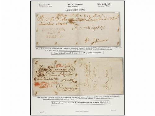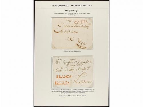 PERU. PERÍODO COLONIAL. Colección compuesta por 156 cartas. Destacando a parte de varias CERTIFICACIONES A LIMA, las cartas certificadas de PIURA, PALPA, GUANCAVELICA y HUAMANGA así como varias decenas de cartas únicas o menos de tres conocidas. Conjunto excepcional e irrepetible contiene las mejores piezas de las colecciones de COLARETA y FERNANDO CAMINO así como piezas procedentes de las colecciones de BUSTAMANTE y L. J. HARRIS. Sin duda estamos ante la colección de Perú Colonial más importante jamás formada. (Ver todas las imágenes en web).