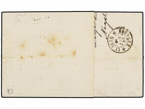 BELGICA. 1869. LIEGE to MADRID (Spain). Folded letter franked with 20 cts. blue and 1 Fr. lilac stamps, tied by 217 grill cancel. RARE franking.