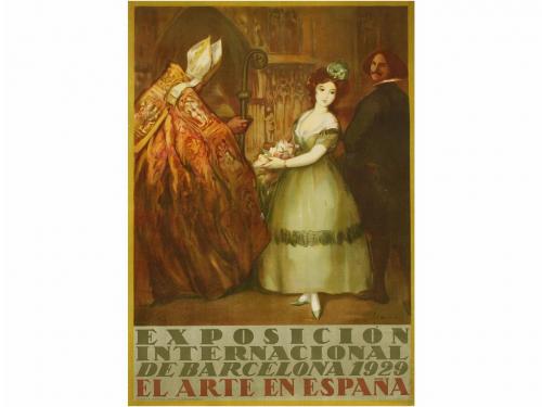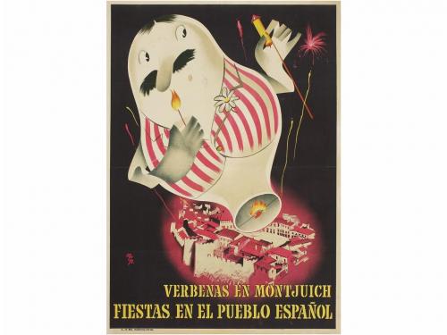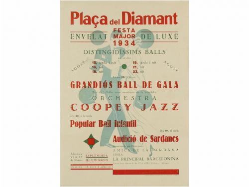 1930-1948 ca. CARTEL. (FIESTAS). TUSELL; CANALS... :. 4 CARTELES DE FIESTAS Y EXPOSICIONES. Lote de conjunto de 4 carteles. 1 fotograbado, 1 cartel de imprenta y 2 litografías. Incluye: FIESTA TRADICIONAL CATALANA; FESTA MAJOR DE LA PLAÇA DEL DIAMANT; VERBENAS EN MONJUICH FIESTAS EN EL PUEBLO ESPAÑOL Y EXPOSICIÓN UNIVERSAL DE BARCELONA 1929. EL ARTE EN ESPAÑA. 48 x 33 cm (19 x 15 in) y 100 x 70 cm (39,5 x 27,5). Uno de ellos anónimo. A y A-.
