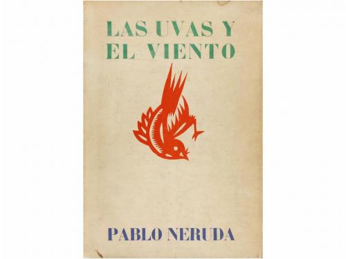 1954. LIBRO. (LITERATURA). NERUDA, PABLO:. LAS UVAS Y EL VIENTO. Santiago de Chile: Nascimento, 1954. 4º mayor. 422 p. Intonso. Rústica original, algo sucia. Primera edición.
