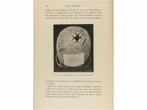 1912. LIBRO. (MEDICINA PREHISTÓRICA). LUCAS-CHAMPIONNIÈRE:. LES ORIGINES DE LA TRÉPANATION DÉCOMPRESSIVE. Trépanation néolithique, trépanation pré-Colombienne, trépanation des Kabyles, trépanation traditionnelle. AVEC 32 FIGURES. Paris: G. Steinheil, 1912. 4º menor. 131 p. + 2 h. LUCAS-CHAMPIONNIÈRE, investigador y médico francés fue el preculsor de las teorias sobre las trepanaciones prehistóricas frente a las rituales. Profus. ilustr. con dibujos y fotografías de diversas técnicas y morfologías de trepanación. Enc. en media piel, tejuelo; cantos ligeramente rozados. Alguna anotación a lápiz.