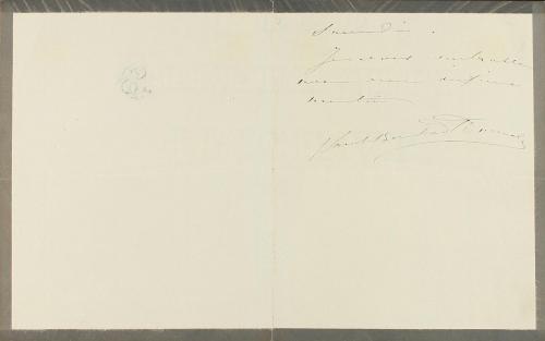 1885 ca. MANUSCRITO. CARTA MANUSCRITA Y FIRMADA POR SARAH BERNHARDT, DIRIGIDA AL PINTOR ALFRED STEVENS. Breve misiva sobre papel en 12º. El papel lleva un anagrama de la artista y va dirigida al pintor Alfred Stevens, que realizó un retrato de la famosa actriz en 1885.