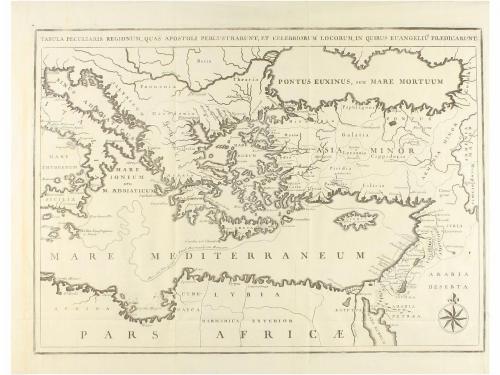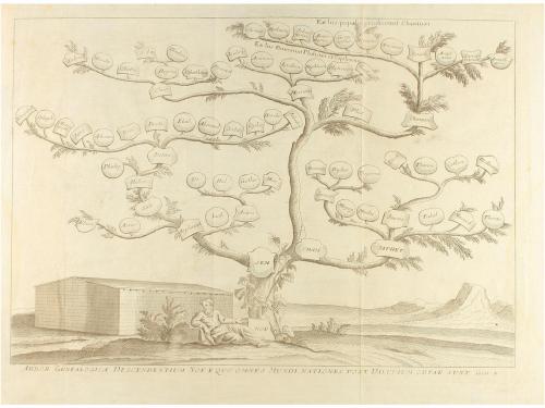 [1761]. MAPA. (TIERRA SANTA). [CALMET, AUGUSTINO; DOMINICO MANSI, JOANNE]:. CONJUNTO DE 3 MAPAS Y 1 ÁRBOL GENEALÓGICO DE TIERRA SANTA. Conjunto de lám. calcográficas que forman parte de la obra: DICTIONARIUM HISTORICUM, CRITICUM, ... SACRAE SCRITURAE... Venetiis, MDCCLXVI. Agrupación que incluye: TABULA ITILERIS & STATIONUM ISRAELITARUM in Deserto ab eorum egressu ex Aegypto ad transitum Iordanis; TABULA PECULIARIS REGIONUM, quas apostoli perlustrarunt, et celebriorum...; TABULA TERRAE PROMISSAE...; ARBOR GENEALOGICA DESCENDENTIUM NOE E QUO OMNES MUNDI NATIONES... . Papel 36,5 x 48 cm; huella: 33,5 x 46 cm. aprox. Señales de doblez.