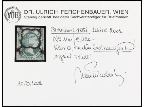 ° ESPAÑA. Ed. 11. 10 reales verde. PIEZA DE LUJO. Dictamen FERCHENBAUER. Cat. 720€.