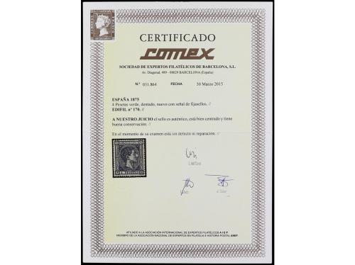 ** ESPAÑA. Ed. 170. 4 pts. verde. Centraje perfecto. PIEZA DE LUJO. Cert. COMEX.